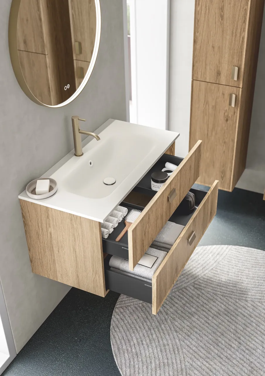 Quadra ist ein vielseitiges Badmöbelprogramm, das sich flexibel an Raumgrößen und Stilrichtungen anpasst.